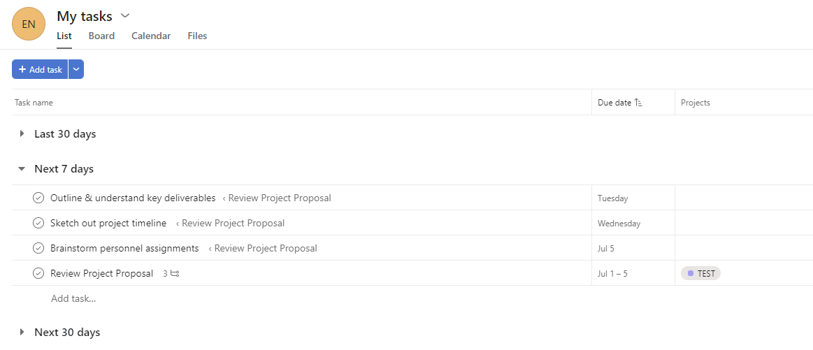 The feature within Asana that I use most often is the “My Tasks” tab. This is the consolidated view where all of the tasks assigned to me live. Instead of having to click into each project board, I can come here to see what deadlines I have due today, and what I have due in the near future, and at a glance can see exactly how full my workload is.