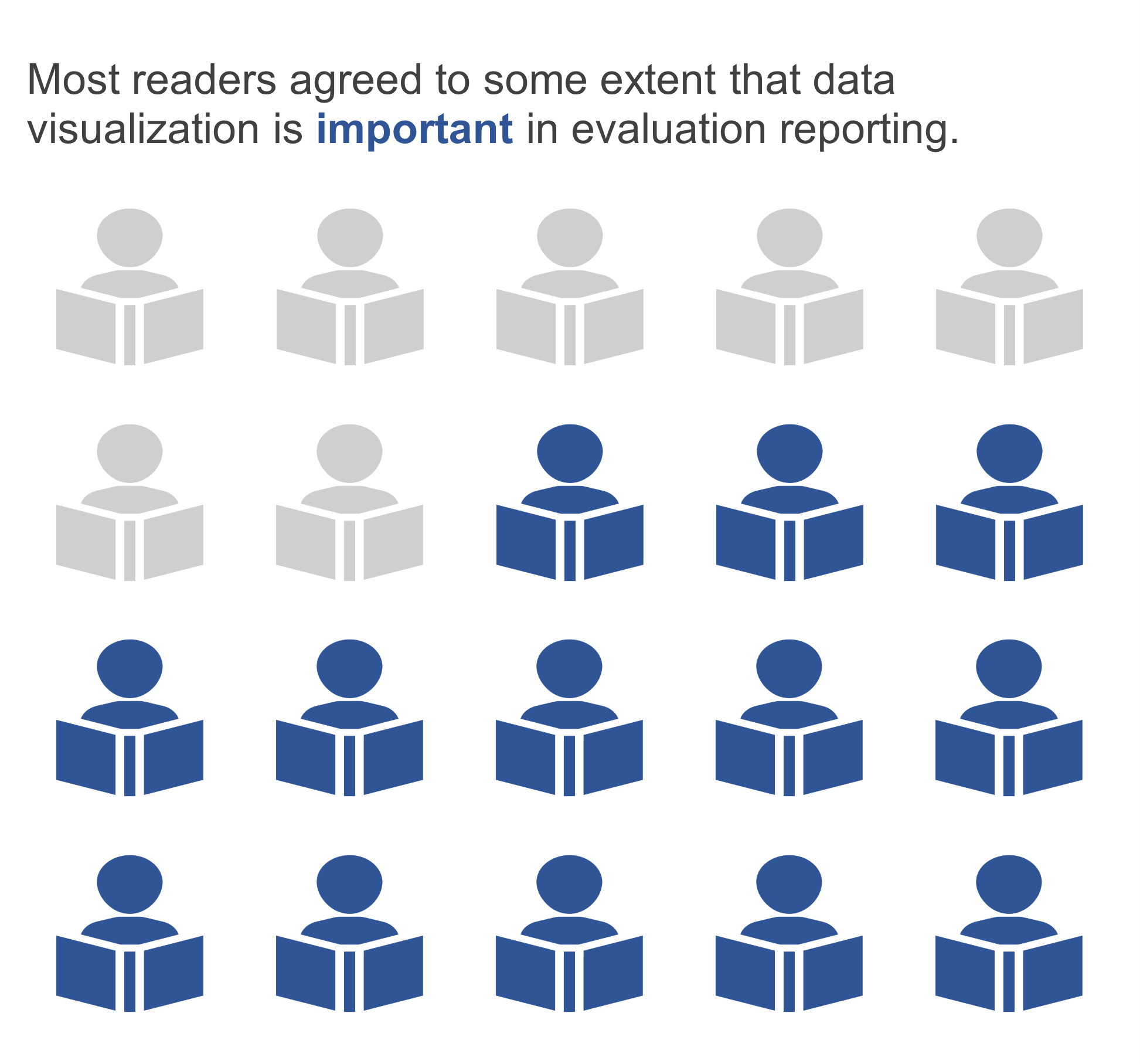 When working with parts of a whole data that references small groups of participants, icon arrays can be a good option. Here, icons are used to represent individuals. This is a particularly effective option when numbers are small and percentages are, therefore, less helpful.